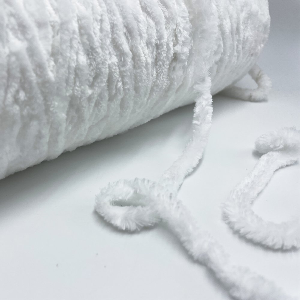 The coarse structure of the 0.6NM Chenille yarn provides exceptional three-dimensionality and coverage, while the extra-long pile design further amplifies its softness. Each fiber undergoes precise combing and shaping to ensure a uniform and dense pile, presenting a luxurious texture visually and providing a delicate and comfortable feel against the skin. Whether used in home furnishings or apparel accessories, it significantly enhances the overall quality of the product.
